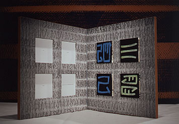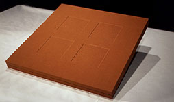 Kassette: 60 x 60 x 4 cm – FÜNFHAUSERWERKSTATT Wien – 2004 Eitempera, Indigo/Malachit/Mangancoelinblau auf Leinwand, Holzspannrahmen, 4 x 12/12/2 cm, 2001