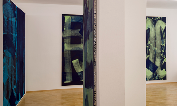 It is philosophical concepts, the processing of which, or rather, the development of which Hirtl is concerned with in her art. Hirtl's pictures are artistic approaches to fundamental concepts of the human condition or aspects of states of being, as reflected in Eastern philosophy: in her oeuvre, the concepts of time, place, self, language, and the juxtaposition of inside and outside recur regularly. Here in this selection of paintings, the artist deals with the flow of time, the course of time (also with infinity) and the notion of the self. Underlying these categories, we discern ideas likely to be influenced by phenomenology, hermeneutics, and the Japanese Kyoto School. The sign used in each case, no matter how modified it may be from the original kanji, serves as a marker; the artistic transformation of the chains of associations linked to the selected terms, however, reveals itself in the process of representation – be it in the astounding depth structure of each painting, in the sequence or juxtaposition of individual panels, or in the dissolution or fragmentation of the symbolic referent across several parts of the painting.